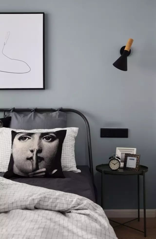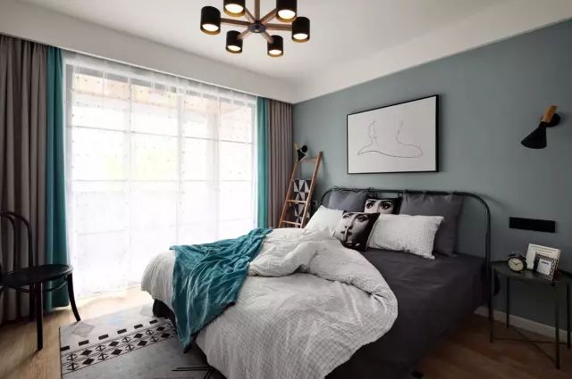 ▲主卧室为冷色调,在家具的选择上选用了宜家性价比很高的科帕达铁艺床。窗帘外是阳台,没事的时候就可以去发发呆。