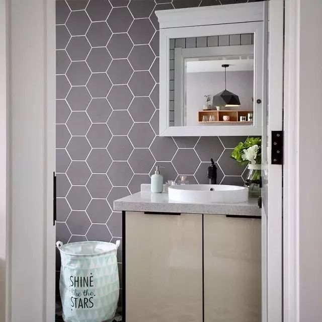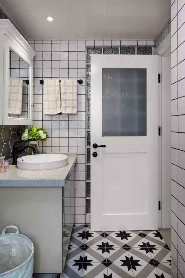 ▲卫生间使用黑白灰调子,显得明亮干脆。地面花砖的铺设,我很喜欢。以后我家重新装修了我也要这样装修一番。
