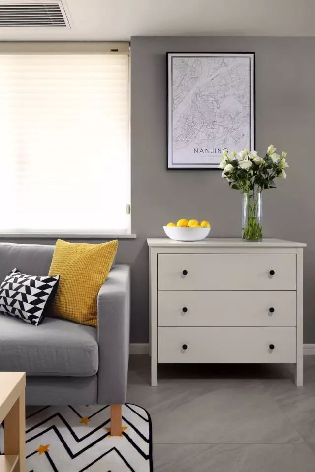 ▲无论是沙发还是茶几、摆件,业主都选择了线条简单的款式,不占地方还格外的有颜值。